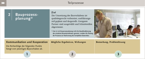 Gehen Sie die Teilprozesse von KOMKO-bauen schrittweise durch und analysieren Sie die Kommunikation und Kooperation Ihres Bauvorhabens.
